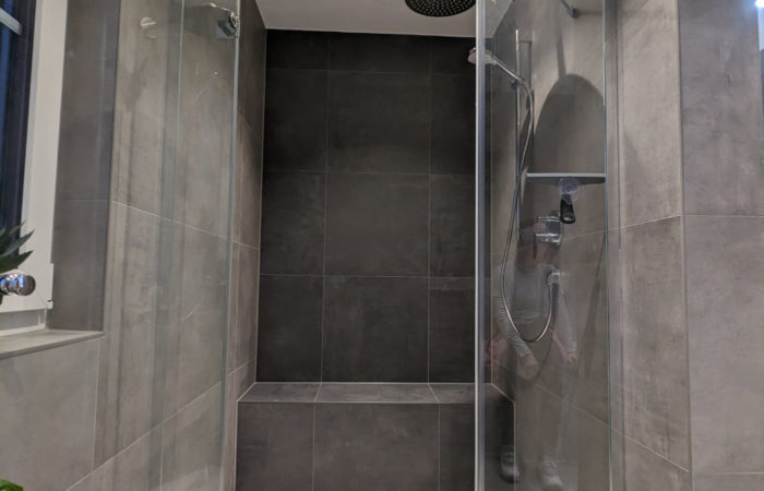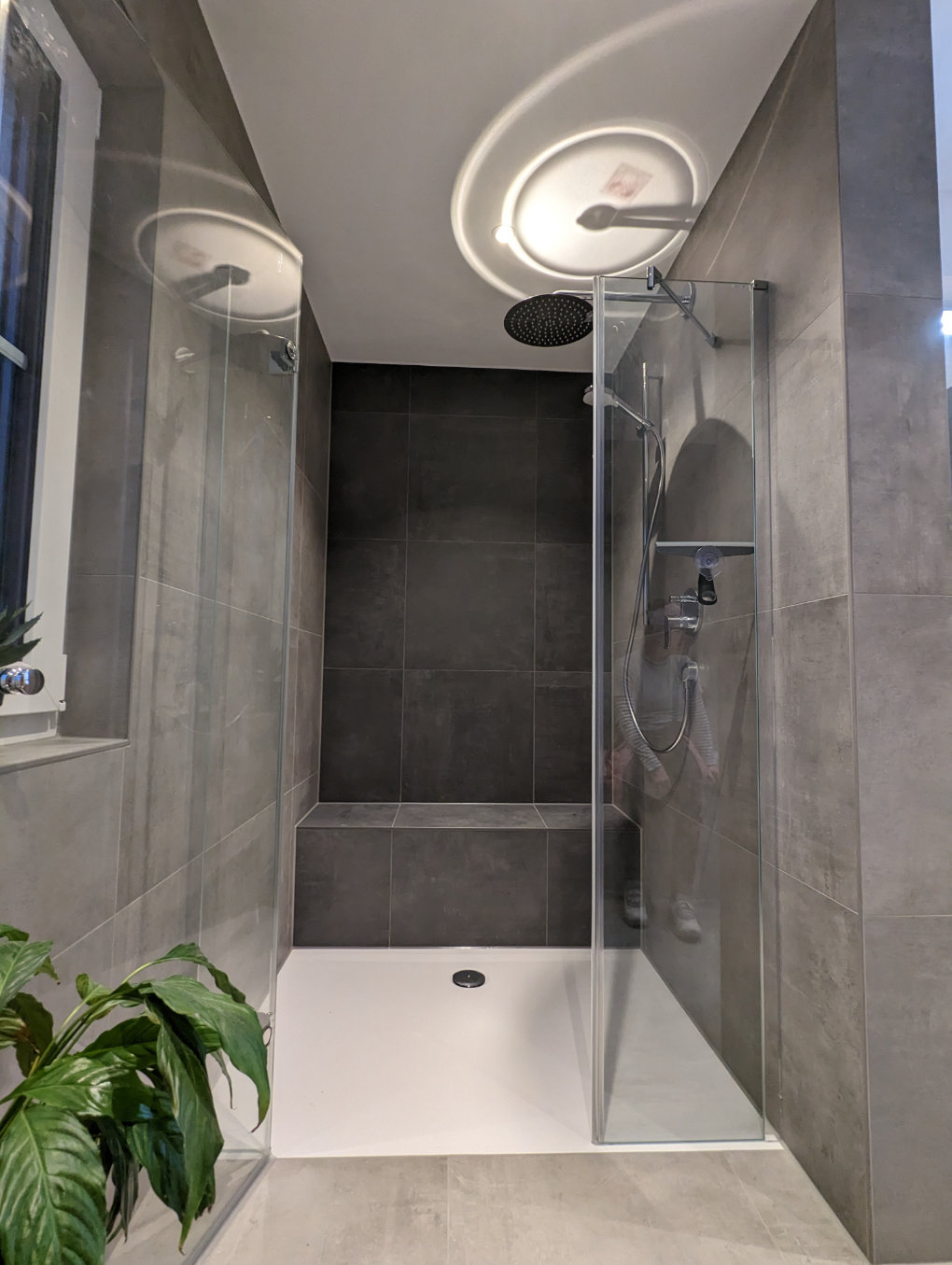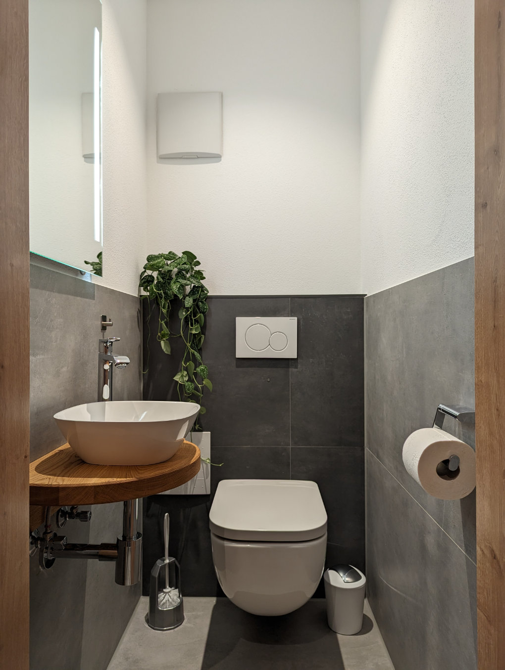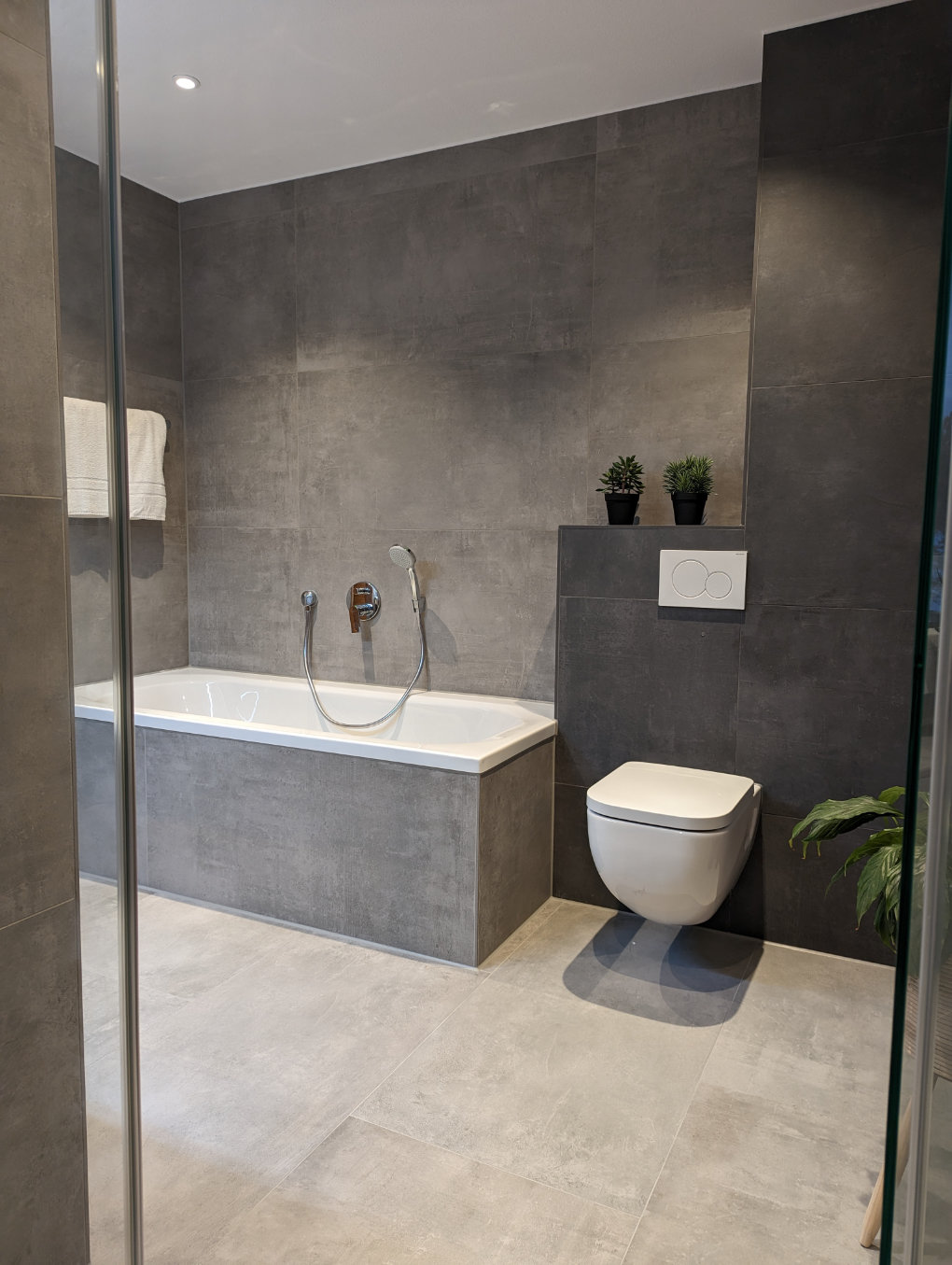Das Badezimmer ist mit Dusche, Badewanne und zusätzlichem WC ausgestattet.